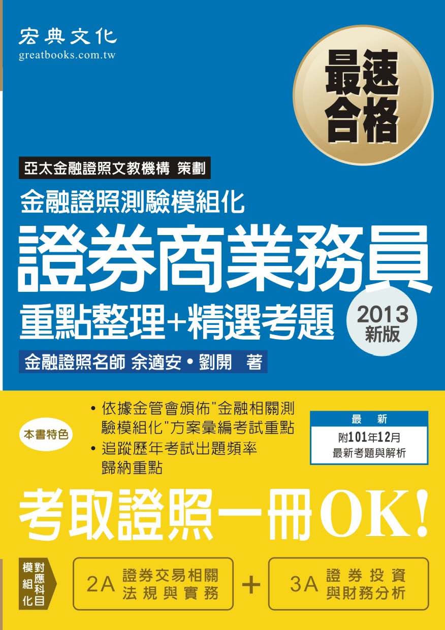 由於近期證券相關法規大幅度修正,為確保讀者能掌握考情趨勢,本書亦將內容歸納調整。各章節之重點整理透過追蹤歷年考試出題頻率 (如內容【93-6】為93年第二季考題),與歷屆考題整理之方式編制,俾能使讀者熟讀後取得高分。