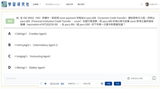 1.練習歷年試卷,並可演練ISO 20022新制之模擬考題