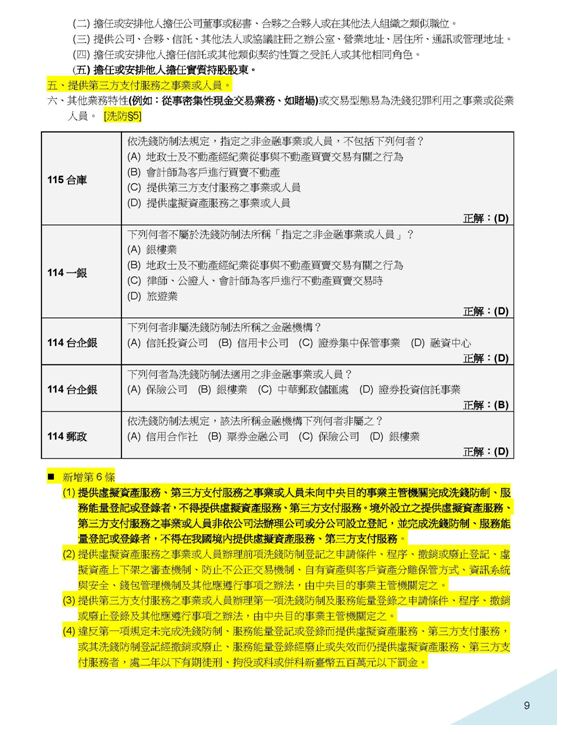 防制洗錢與打擊資恐專業人員測驗 近3年試題(金融研訓院主辦)