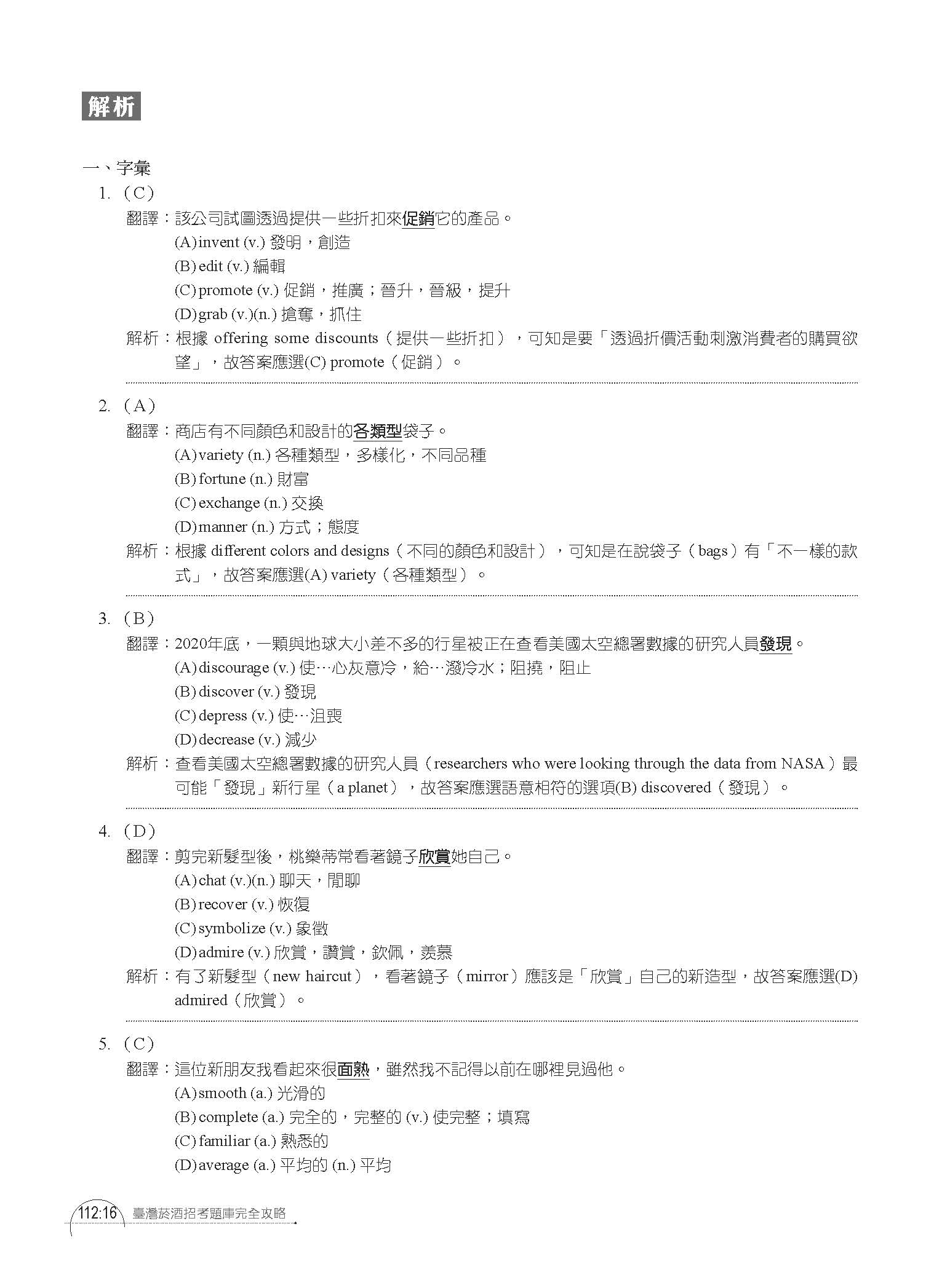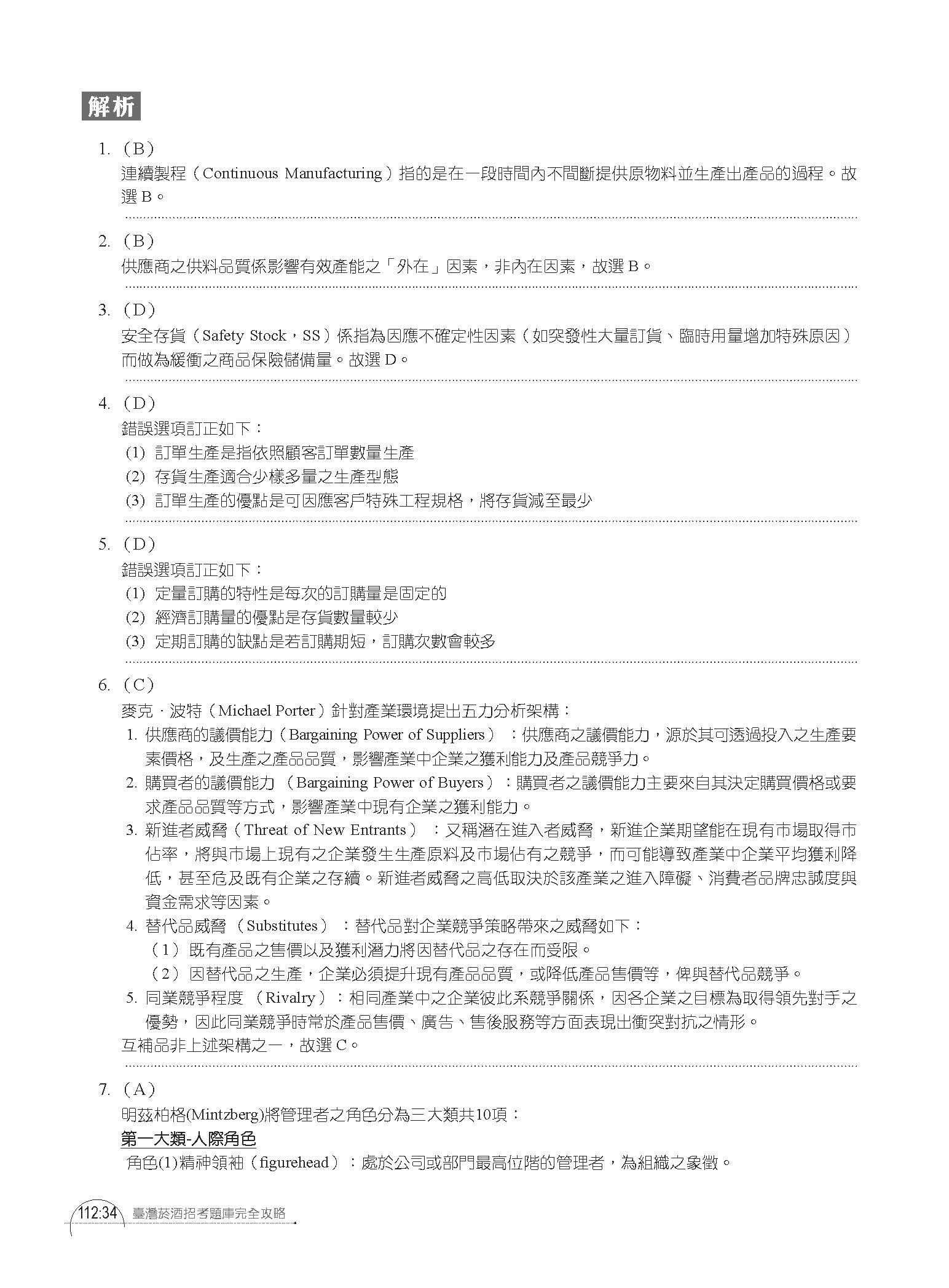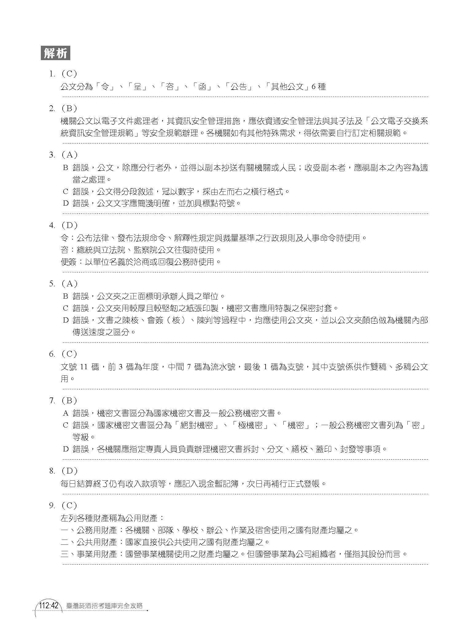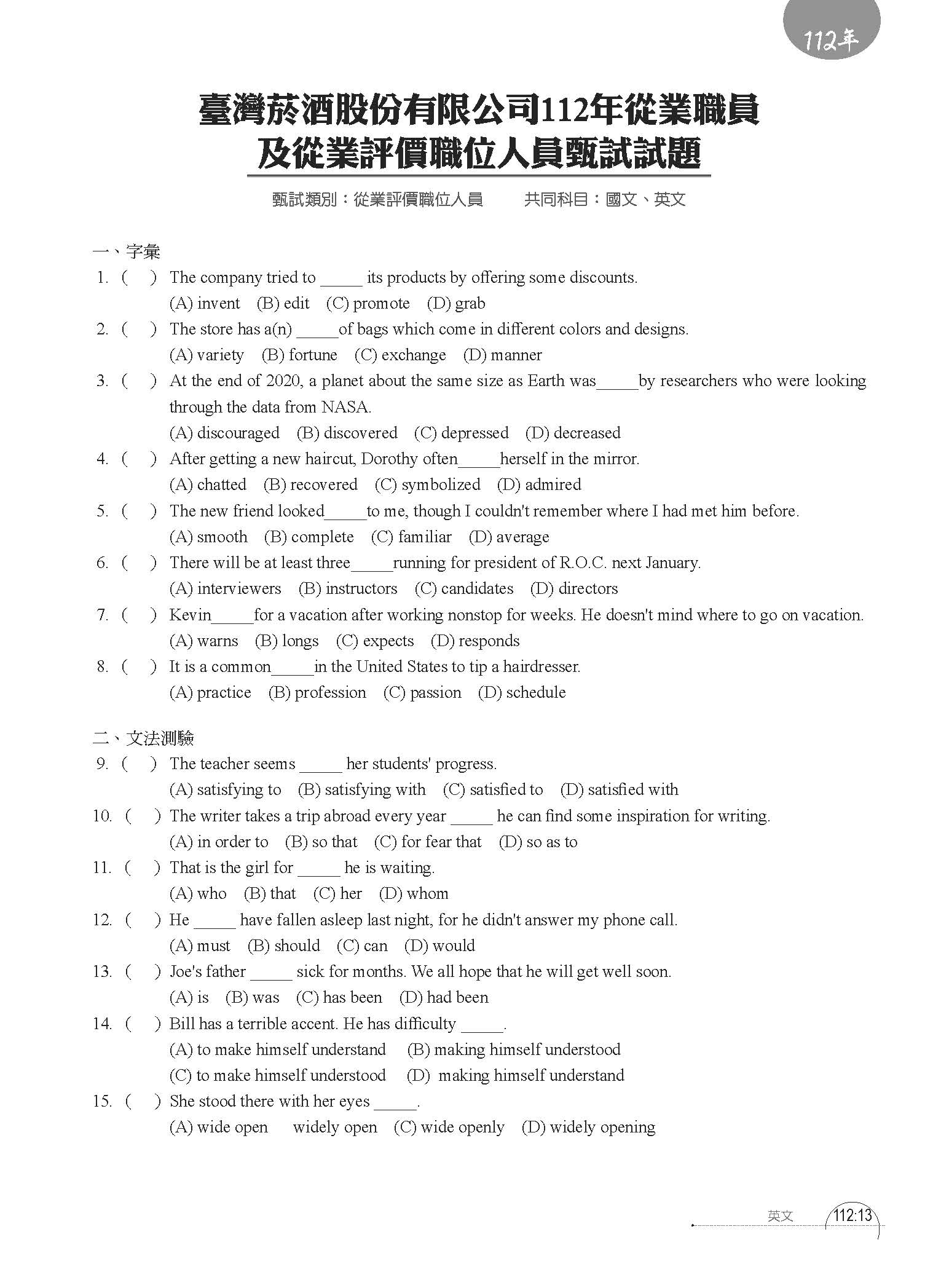 臺灣菸酒股份有限公司112年從業職員及從業評價職位人員甄試試題與詳解