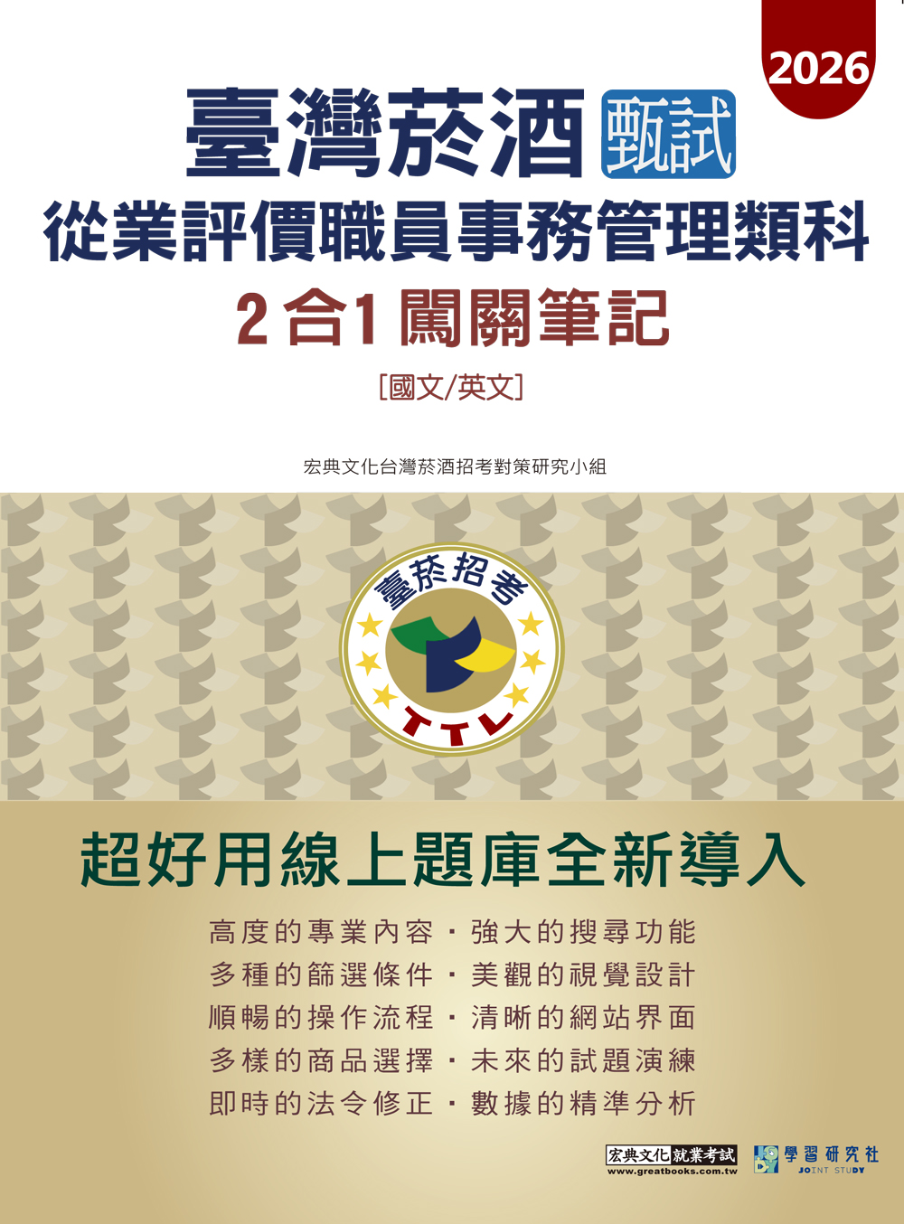 長期來臺灣菸酒招考是相當熱門的一項就業考試,尤其每年吸引許多南部考生報考。在僧多粥少的情況下,如何有效率準備、獲取高分,花最少時間,得到最高的報酬,成為諸多考生的共同心願。緣此,宏典文化聽到考生們的心聲,力邀各大名師,蒐羅中油僱用人員招考例年考題,絞盡腦汁,編寫出「臺灣菸酒從業評價職員(事務管理類)共同科目2合1闖關筆記」系列,務求滿足考生的殷殷期盼。