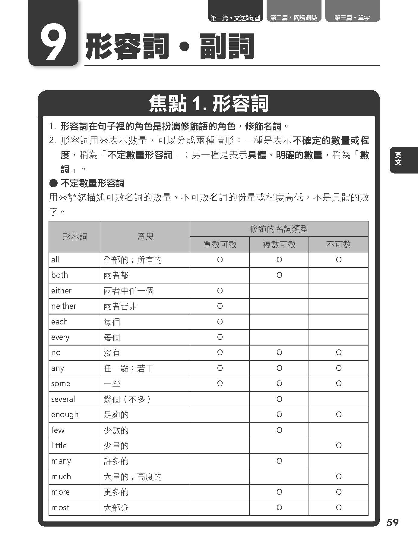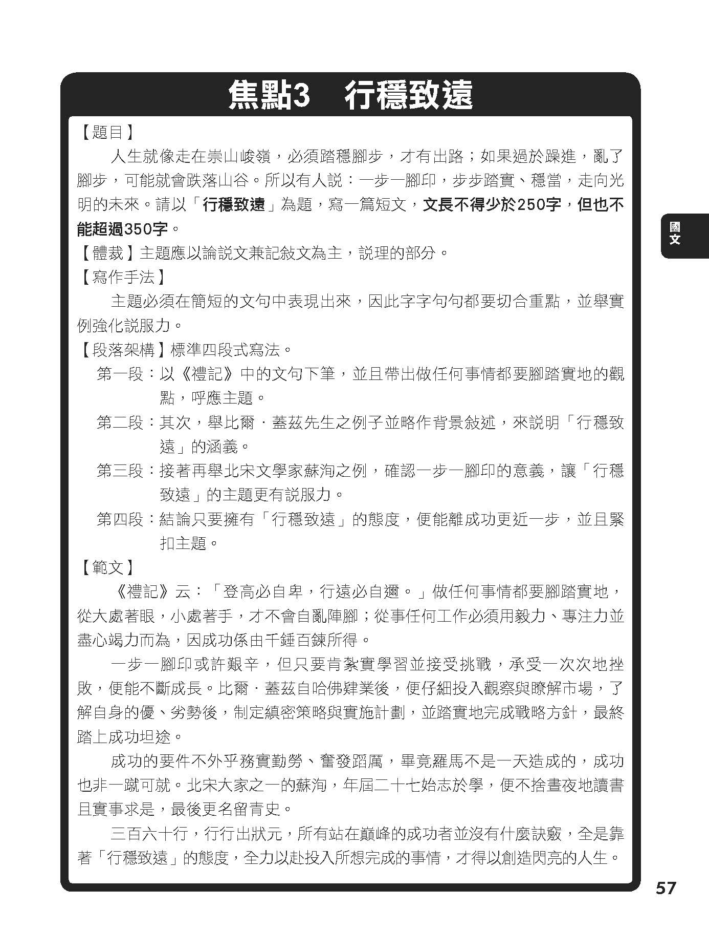 「英文」部分,英文名師「羅然」採用大數據分析,將歷年考題仔細分析,整理出數十個焦點。讓語文考科不再是「汪洋大海」,而是「有跡可循」,戰勝「英文」就從閱讀本書開始。