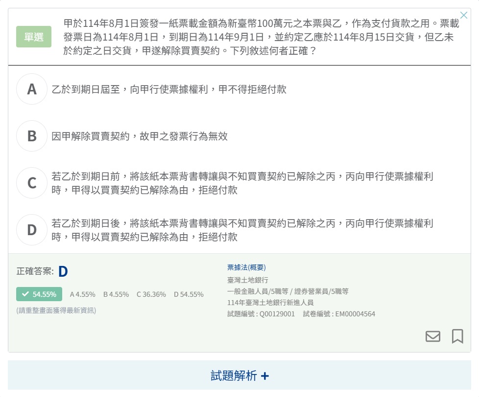 票據近1年考題