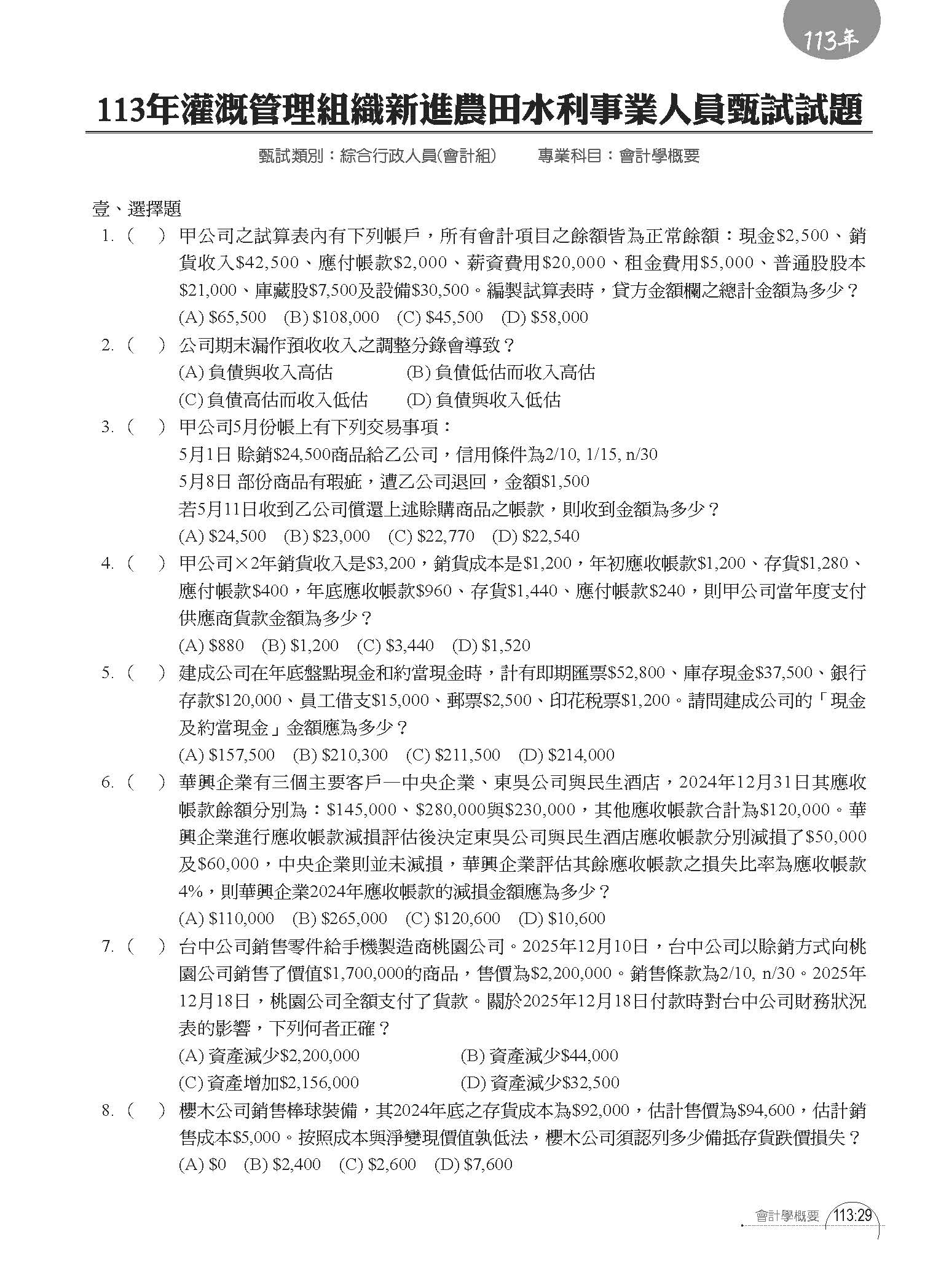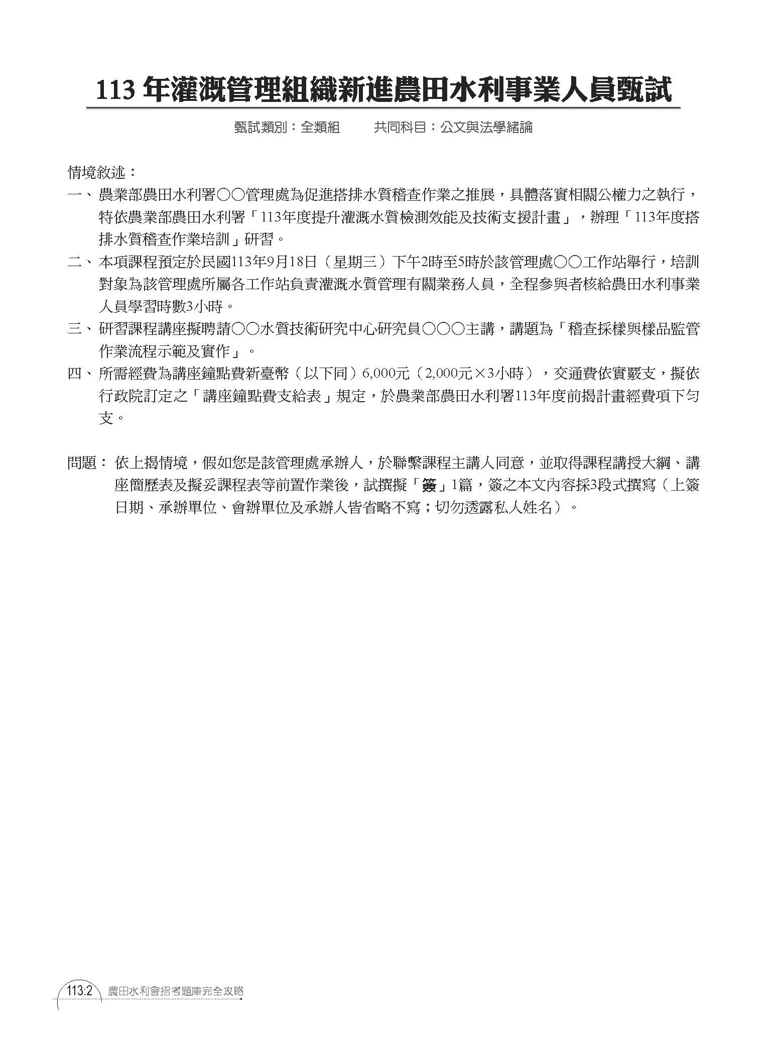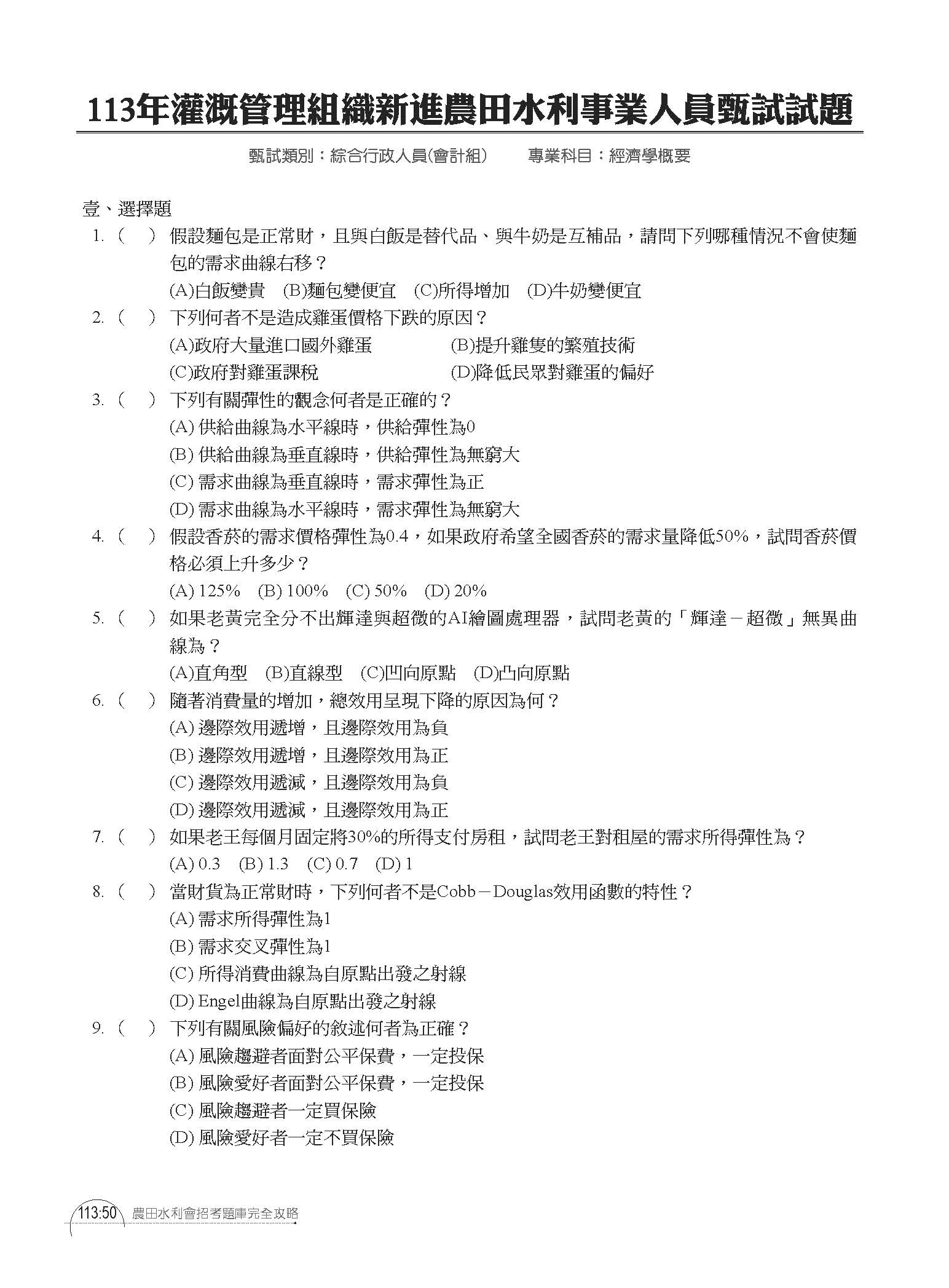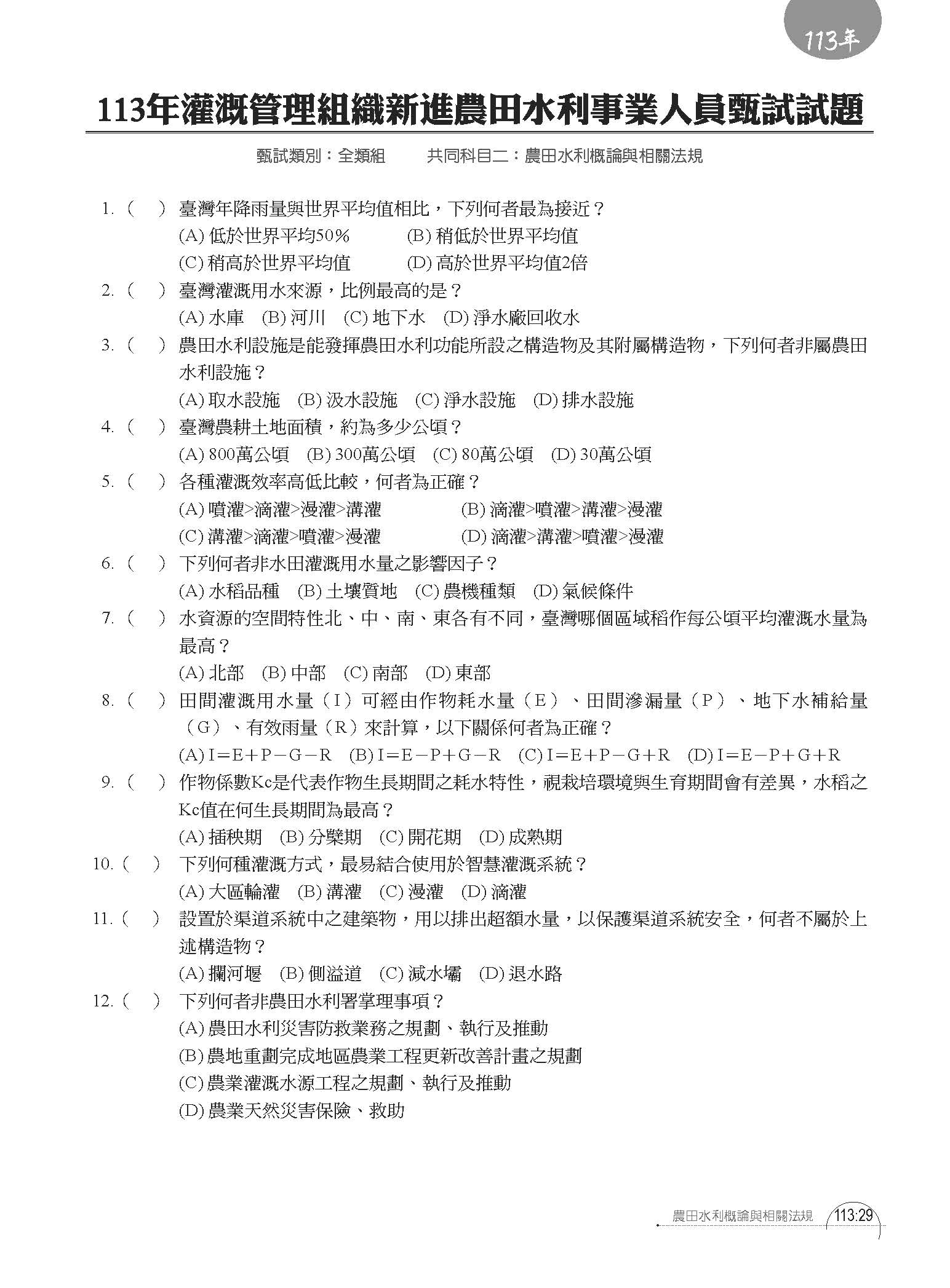 灌溉管理組織新進農田水利事業人員甄試/農田水利會新進職員聯合統一考試