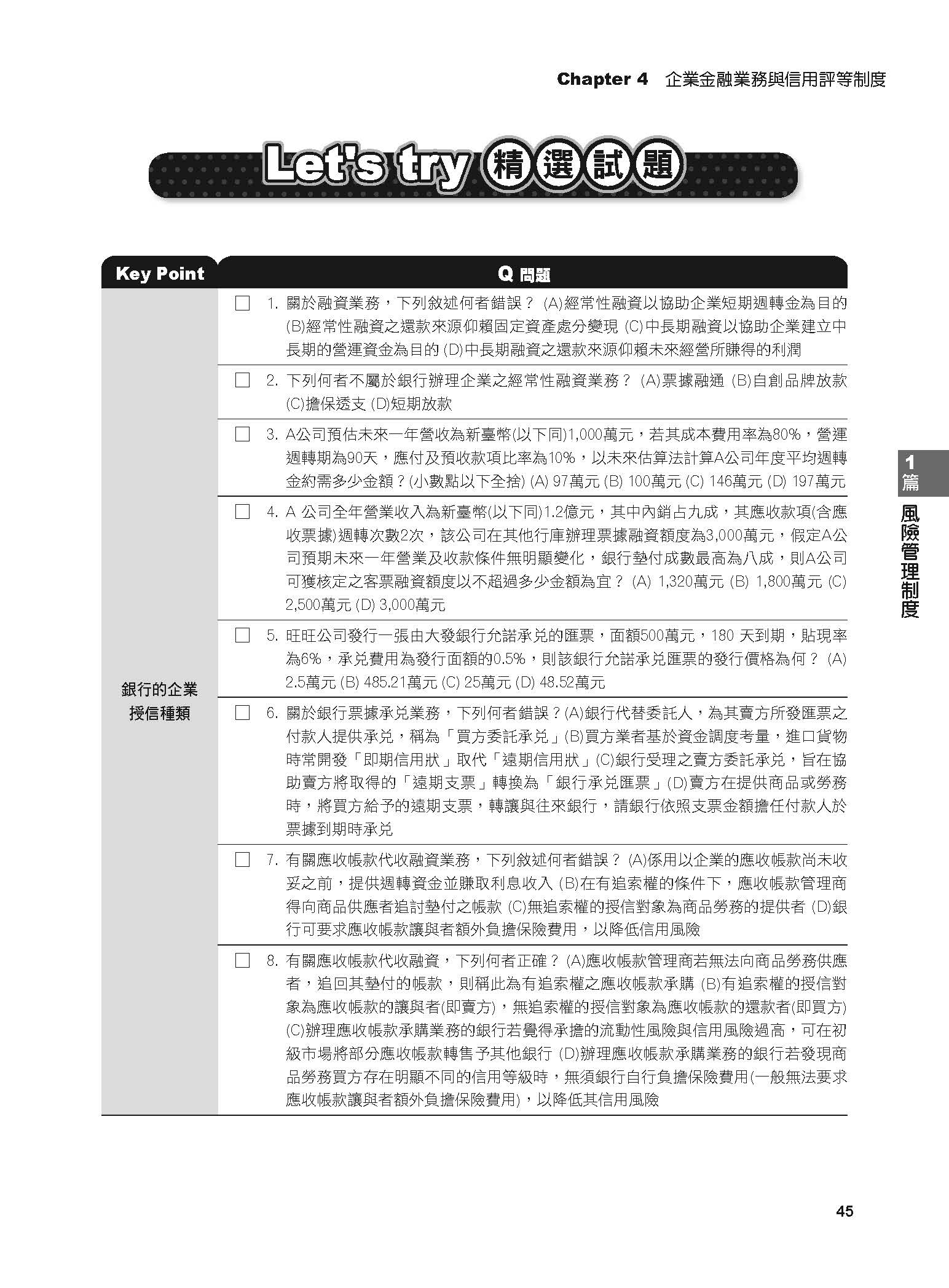 本書係以金融研訓院印行的指定用書最新修訂版本為基準整理而成,在編輯過程雖極盡謹慎,惟疏漏之處或仍難免,敬希方家暨讀者不吝指正,是所企盼。