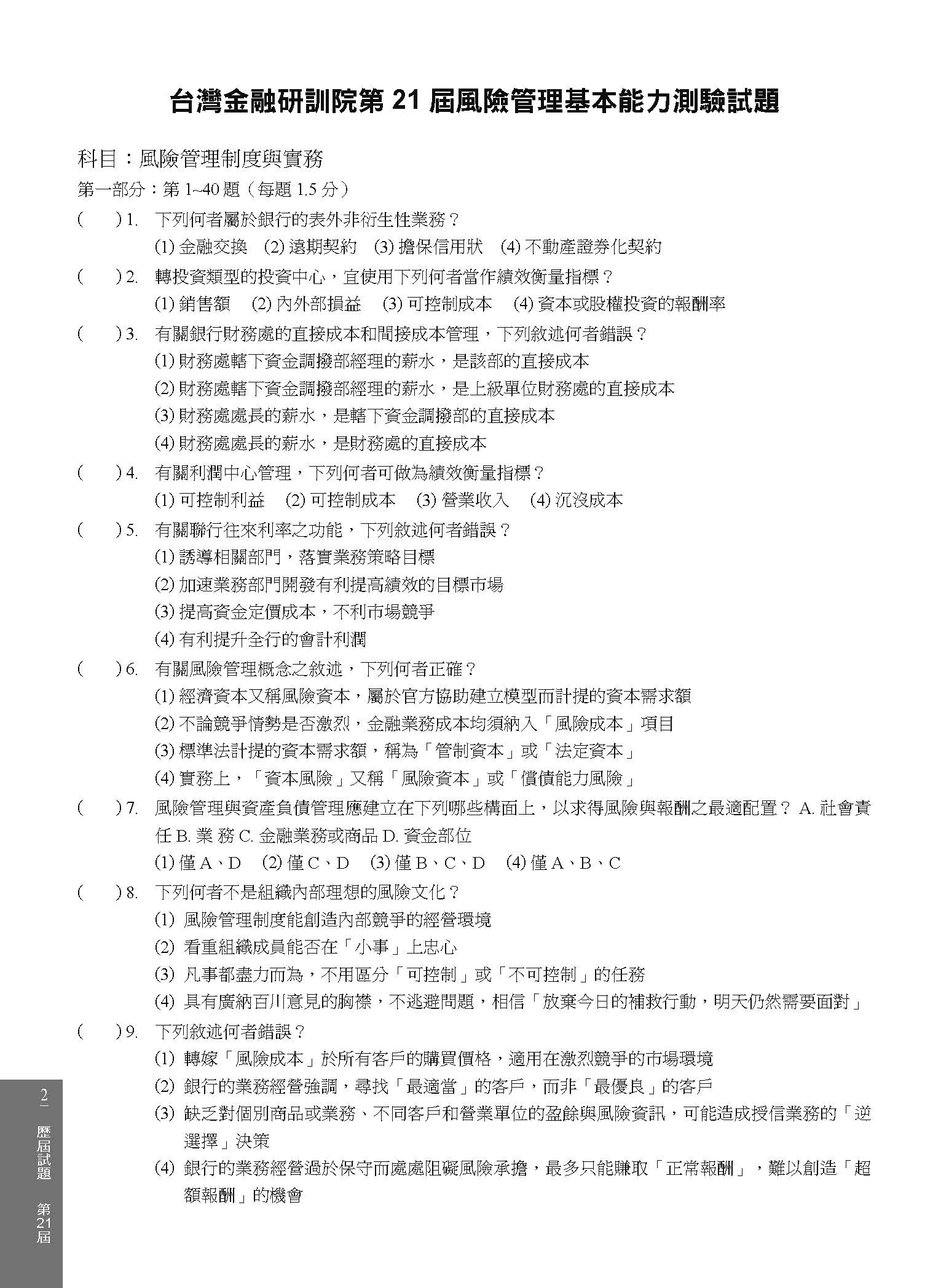 「風險管理基本能力測驗」係台灣金融研訓院為配合金融業務開放及金融創新工具推陳出新,提升金融從業人員風險管理意識,培養符合業務發展需求所需之整合性風險管理基本能力,所舉辦之金融證照測驗,由於其考試內容之範圍除風險管理原理、信用評等制度、授信特徵與產業別的集中性風險、國家風險與國家主權評等、金融機構的資本適足制度、商業銀行的信用風險管理、商業銀行的市場風險管理、商業銀行的流動性風險與利率風險管理、商業銀行的作業風險管理外,尚有風險管理相關法令。不但龐雜而且零散,在應考準備上相對於其他測驗吃力,考生若僅閱讀台灣金融研訓院印行的「風險管理制度與實務」指定用書,常常無法把握重點,進而發生相互混淆之情形,為能幫助應考人員化繁為簡、把握綱領,實有必要做應試重點整理。