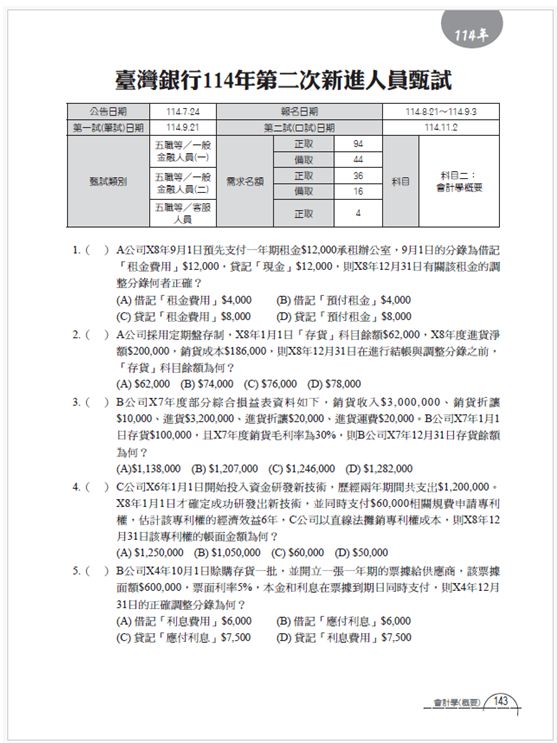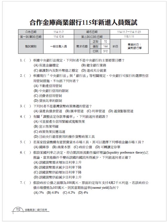 紙本內容:114年銀行招考/其他相關考試試題暨解析