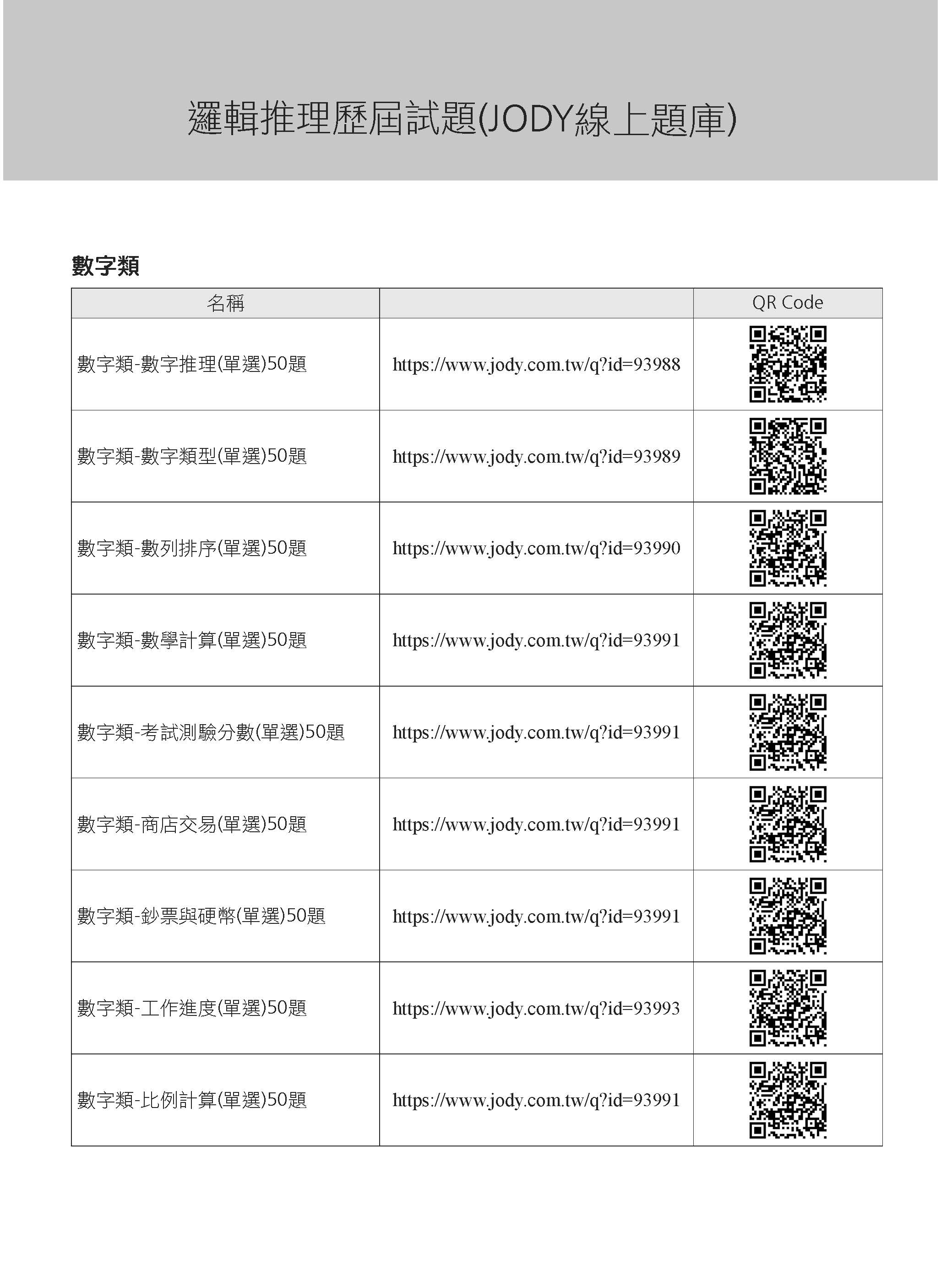 https://www.jody.com.tw/p?id=92416就業考試-公民營事業招考試卷