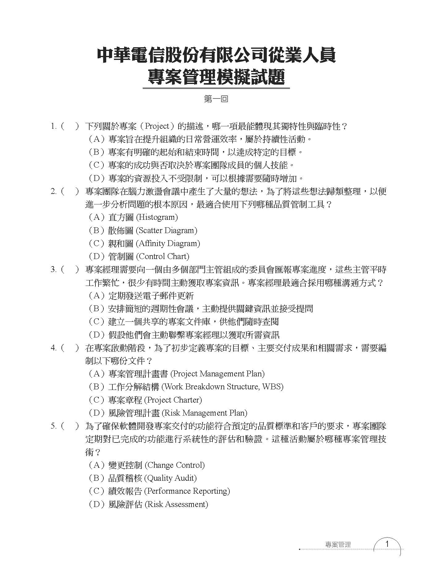 中華電信股份有限公司從業人員專案管理模擬試題 (第一回)