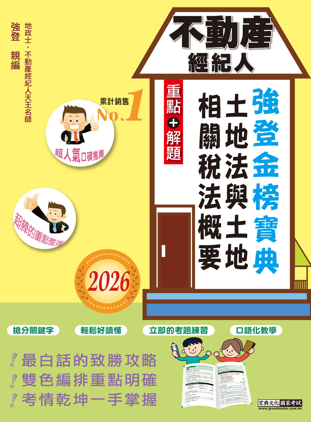 * 本書專為不動產經紀人考試量身訂做,並非與高普考或地政士考試的混用書。