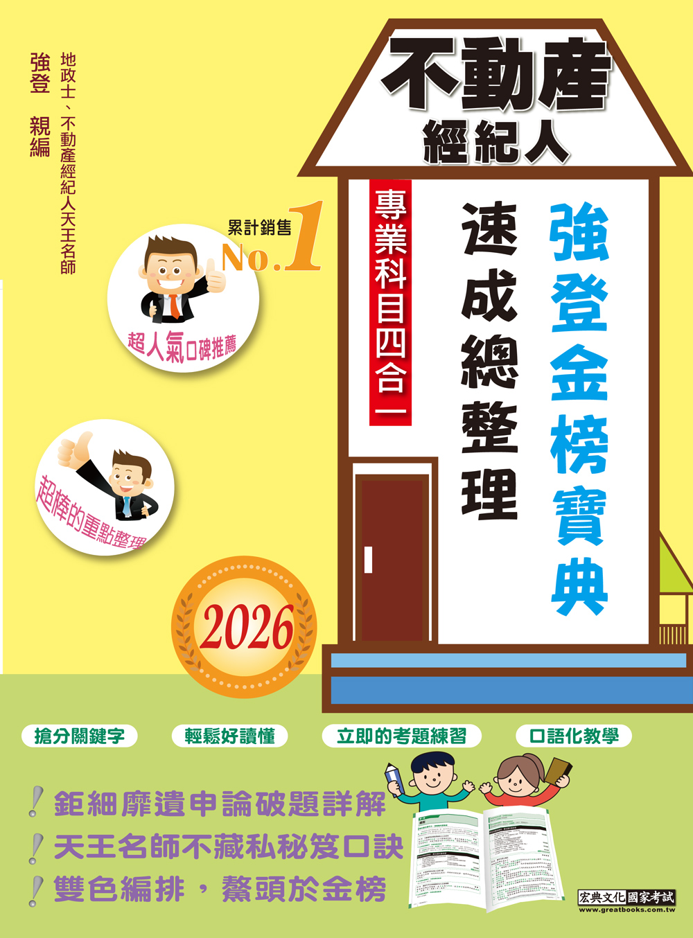 *本書專為不動產經紀人考試量身訂做,並非與高普考或地政士考試的混用書。