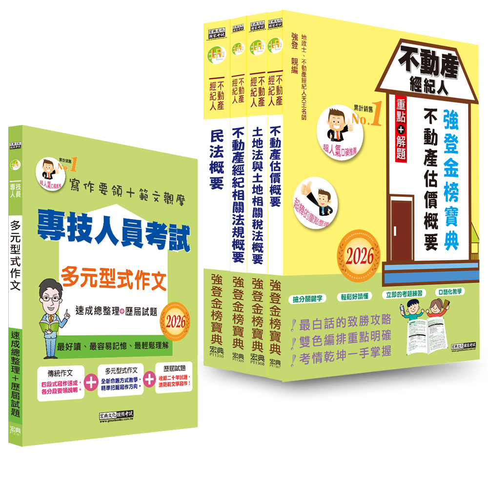 2026全新!不動產經紀人「強登金榜寶典系列(重點整理+精選考題)」:最新第十二版特點如下: