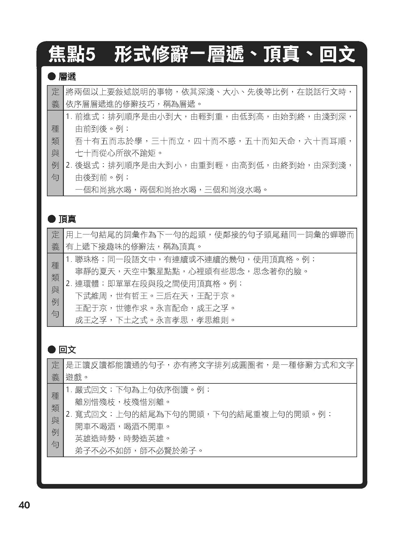 焦點5 形式修辭-層遞、頂真、回文