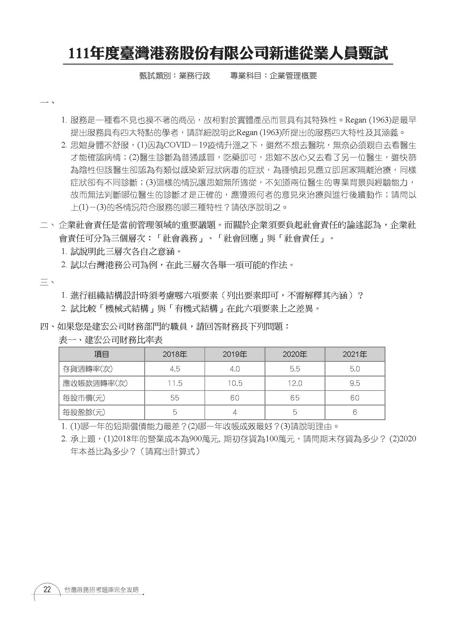 111年臺灣港務股份有限公司新近從業人員甄試 企業管理概要