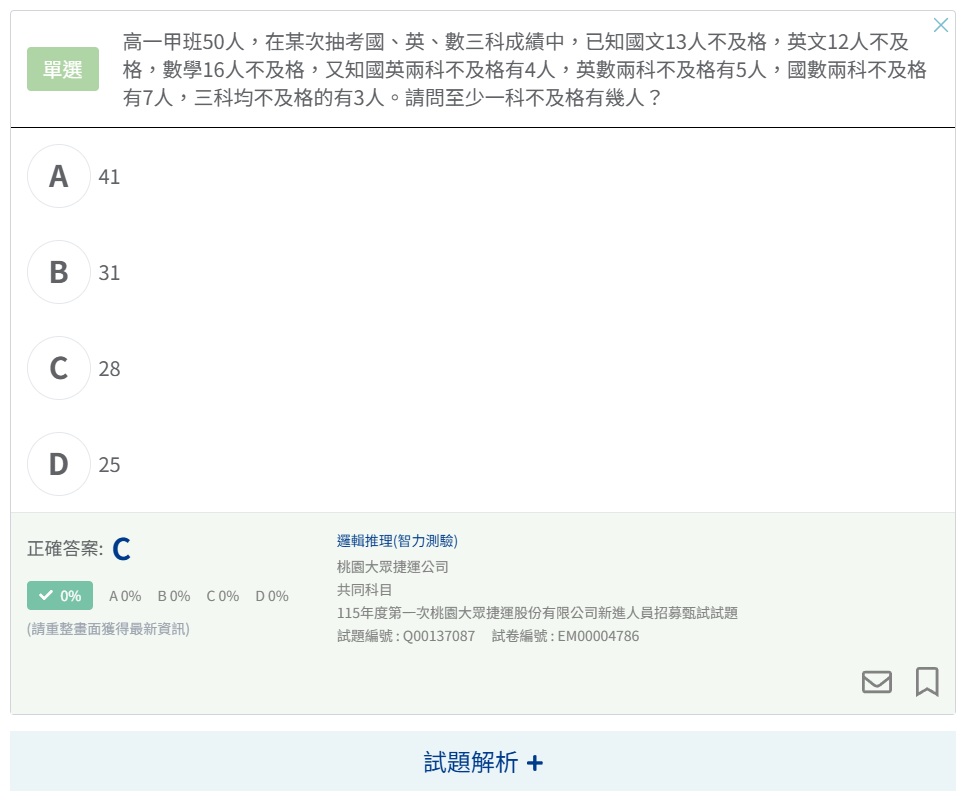 其他類:偏重於綜合理解的思考,題目複雜度高,應冷靜思考後,再行推理。