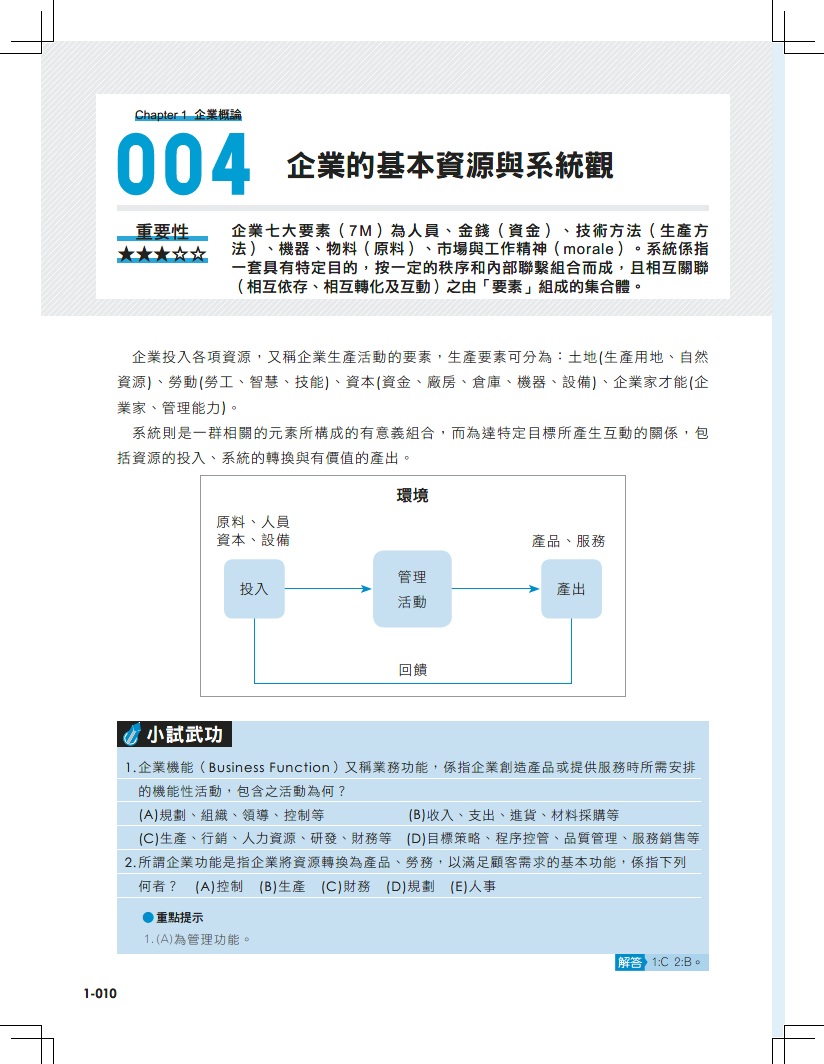 筆者在大學任教多年,編輯之初即針對行銷管理、財務管理部分,相較於其他參考書有更深入的介紹。計算題部分本書均有詳盡完整的解析,尤其財務管理考科,書中有計算單元,希望讀者有效運用,並詳讀內容。再輔以本書新增重點議題,相信必能過關斬將更上一層樓。