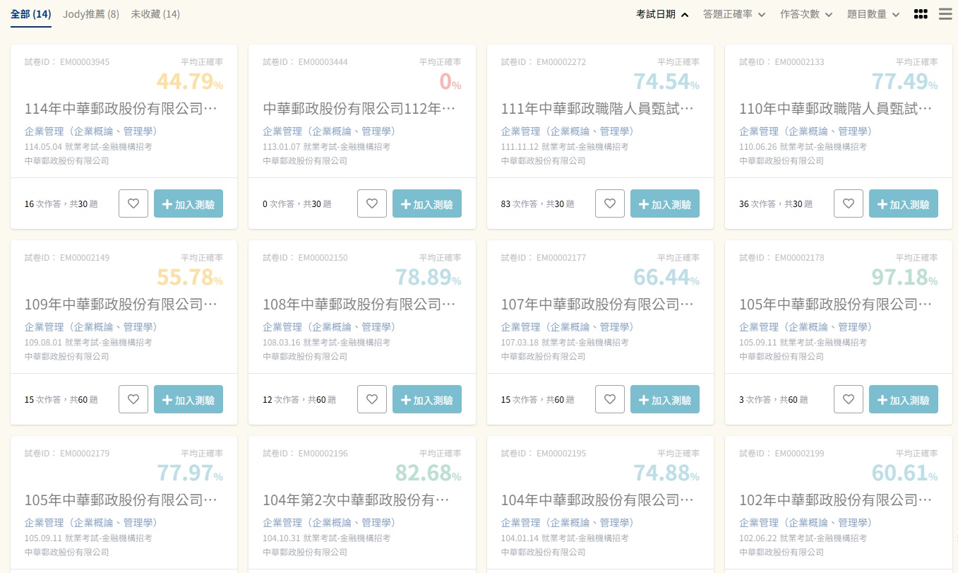 超好用JODY線上題庫、用過的都說讚!