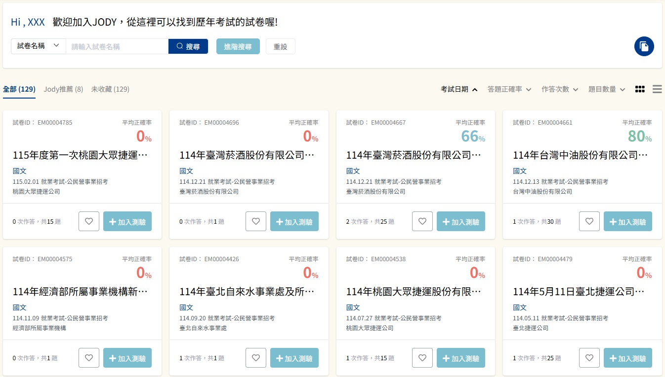 (5)其他網站推薦:我覺得JODY線上題庫真的還不錯用,因為這個線上題庫可以記錄你哪些題目做錯,並且統計相關關鍵字,也可以收藏考古題,並且以亂數方式重新出題,這樣可以避免只背題號答案的窠臼,而是真正能夠理解題目內容。