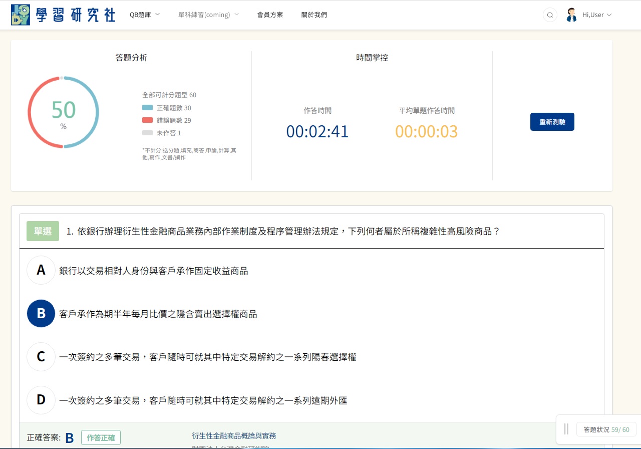 (5)其他網站推薦:我覺得JODY線上題庫真的還不錯用,因為這個線上題庫可以記錄你哪些題目做錯,並且統計相關關鍵字,也可以收藏考古題,並且以亂數方式重新出題,這樣可以避免只背題號答案的窠臼,而是真正能夠理解題目內容。