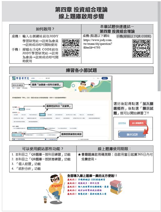 各章節重點整理內容均係由分析師投資學「近十年考題大數據」中過濾整理。以此方式整理出之重點,不僅完全對應實際命題範圍,更重要的優勢在於「大幅縮減準備篇幅」、「精準鎖定真正會考的內容」;所以能有效幫讀者們省下大量寶貴的時間,免去讀到一堆根本不會考的內容,將備考效率提升到最高!