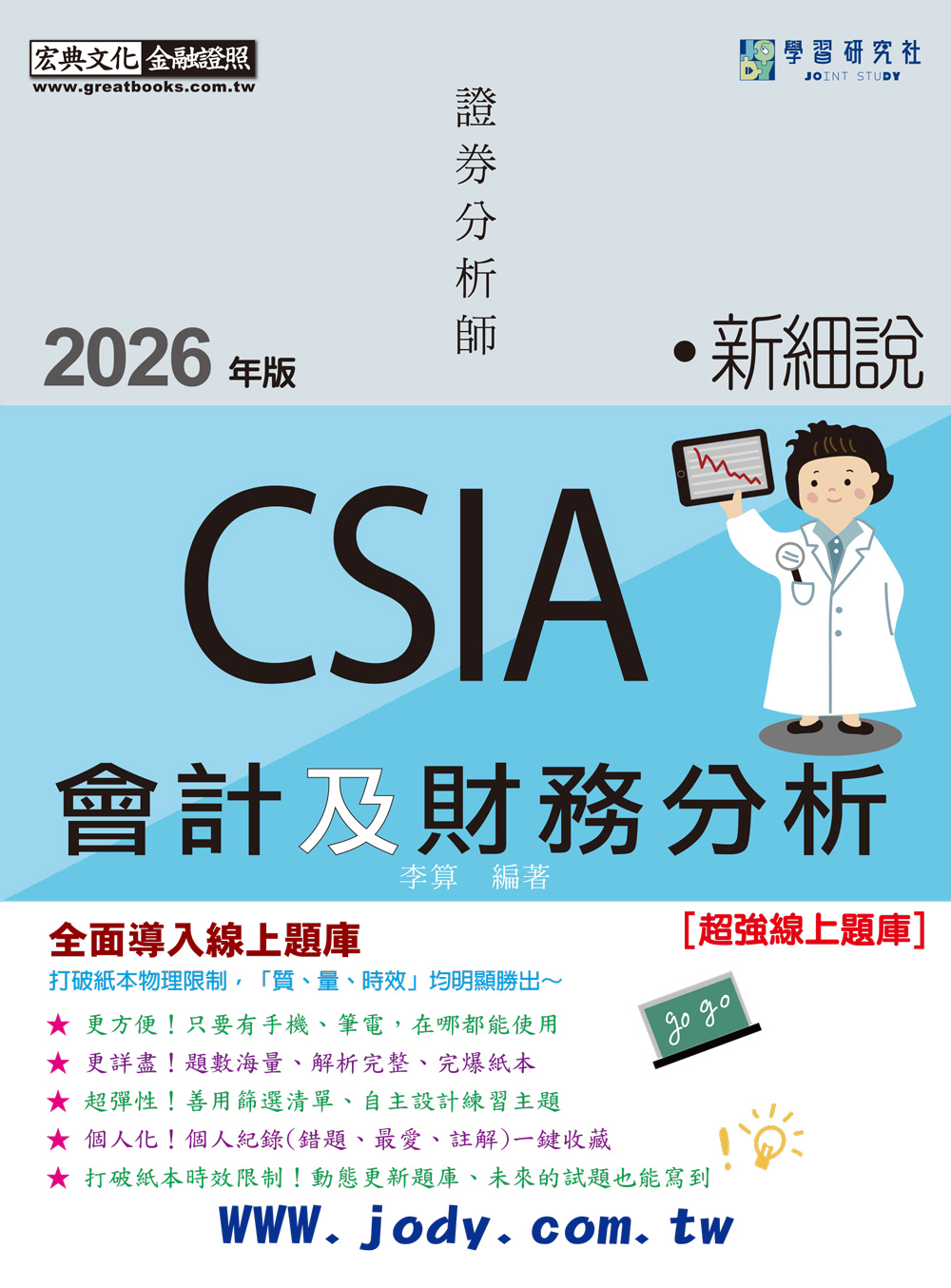 筆者深思究竟有何種方法,可以在有限篇幅內,幫助考生最大程度理解會計學與財務管理,並在有限時間內精準備戰考取高分?這個構想終於在出版社建置了「會計及財務分析線上題庫」後得以落實→眼前呈現給讀者的這本「新細說證券分析師_會計及財務分析」,就是筆者將理念化為實際的產物。本書具備以下特色: